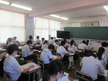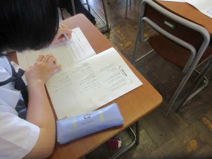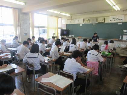 6限に、合唱コンクールの選曲をしました。CDから流れる曲の中からクラスで歌いたい曲の希望を紙に記入しました。どのクラスも真剣に聴いている姿に、中学校最後の合唱コンクールにかける思いが伝わってきます。