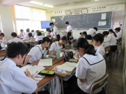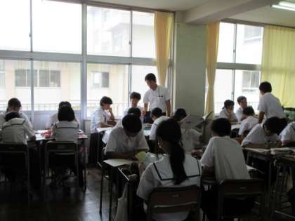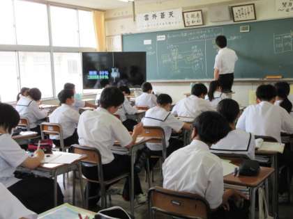 7月8日(月) 授業の様子(1学年) 公開日 2024/07/08 更新日 2024/07/08 第1学年 社会科は、時差について学習中でした。経度15度につき、1時間の時差をグループで協力しながら計算していました。 理科は、先生の話に集中していました。