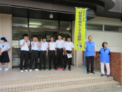 保護司の方々と一緒に挨拶運動を行いました。ご協力、ありがとうございました。