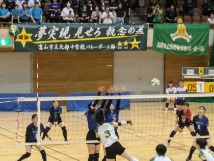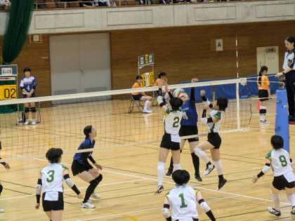 女子バレーボール部です。ファンバさん相手に25対7で、1セット目勝利しました。頑張れ!北中生!