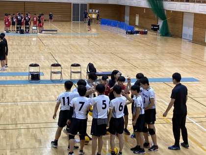 男子バレーボール部、準決勝戦前の練習が始まりました。頑張れ!北中生!