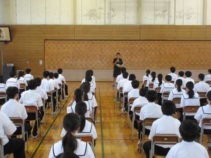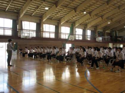 7月23日(火)学年集会2(2学年) 公開日 2024/07/23 更新日 2024/07/23 第2学年 後半の様子です。夏季休業中の学習や生活についての話に、生徒たちは、真剣に耳を傾けていました。最後に学年主任が、これまでの生活を振り返り、一人一人が正しい行動をすることでよりよい学年にしていこうと話しました。