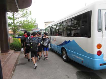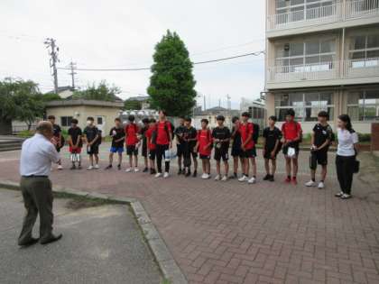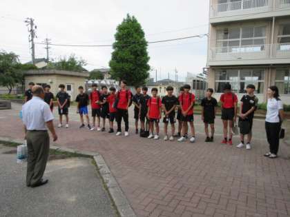 男子バレーボール部が北信越大会に向けて、校長から激励を受け、出発しました。頑張れ!北中生!