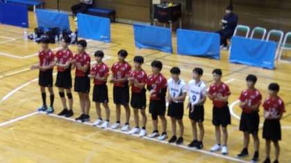 男子バレーボール部、試合開始です。 がんばれ! みんなが応援しています!!