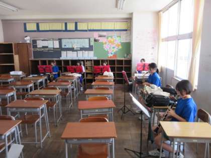 吹奏楽部は、パートごとに別れて練習していました。