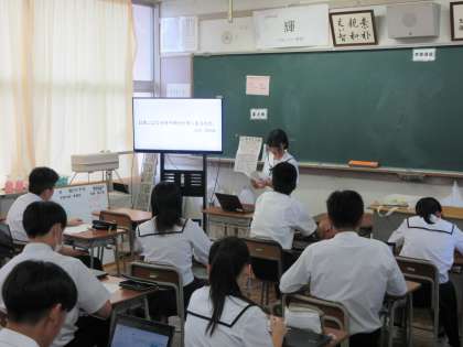9月2日(月) 授業の様子(3学年) 公開日 2024/09/02 更新日 2024/09/02 第3学年 先日に引き続き「日本のよさ発見」の学級内発表会を行いました。一人一人個性あふれるスライドが仕上がり、発表者の意見や感想を真剣に聞いています。