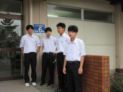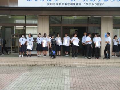 生徒玄関は、選挙運動とあいさつ運動で賑やかです。