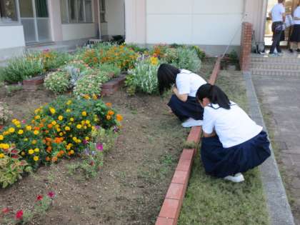 9月4日(水) ボランティア活動 公開日 2024/09/04 更新日 2024/09/04 北中NEWS 掃き掃除、花壇の除草、水やり、ありがとうございます。手作りプランターを生徒玄関前入口に設置しました。