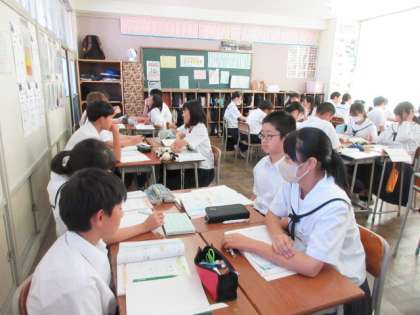 数学の授業の様子です。4人班で、解き方を考えていました。よいアイディアはあったかな?