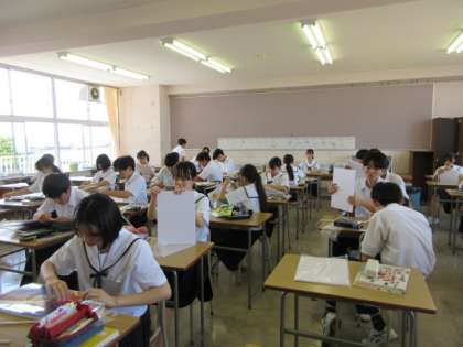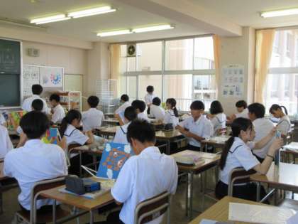 美術の授業では、作品をパネル枠に入れていました。この作業が、なかなか難しく苦戦していました。