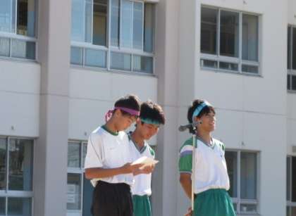 今日の飛翔(ヒーロー)インタビューです。 「みんなで、いい体育大会にするぞ!」「おー!」