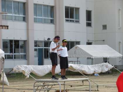 1日の振りのときに、頑張った人に「飛翔(ヒーロー)インタビュー」をします。今日は教育実習の先生も登場してくれました。