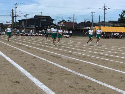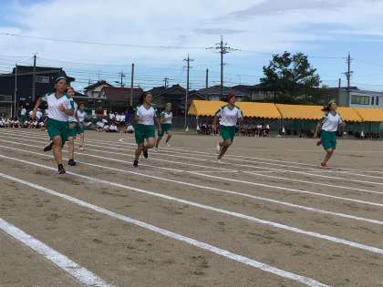 3年生女子です。気合いのこもった、熱い走りが見られます。