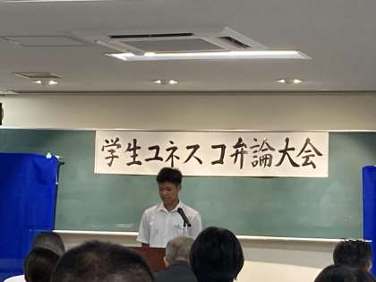 9月28日(土)ユネスコ弁論大会 公開日 2024/09/28 更新日 2024/09/28 北中NEWS 第72回学生ユネスコ弁論大会に、本校3年生徒が参加しました。自分の意見を堂々と発表する姿が立派でした。