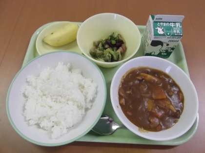 10/1(火)今日の給食 公開日 2024/10/01 更新日 2024/10/01 給食 今日から10月に入りました。今年も残り3ヶ月、90日程度です。満足度の高い1年にするためにも、今まで以上に充実した日々にしましょう。 さて今日は、たべキリンハヤシです。食べるスピードが「早いし」と言われないよう、味わいながら食べきりましょう。 <今日の献立> ごはん 牛乳 たべキリンハヤシ ビーンズサラダ バナナ
