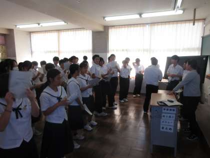 10月1日(火)合唱練習初日(2年生) 公開日 2024/10/01 更新日 2024/10/01 第2学年 合唱練習がスタートしました。初日にしてはどのクラスもよく声が出ていました。今年の合唱も期待できそうです! 頑張れ!2学年!!