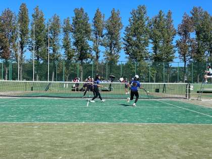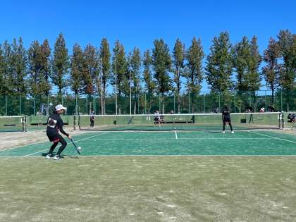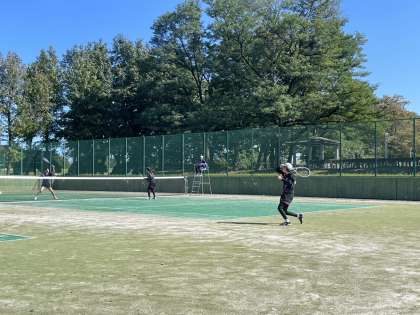 女子ソフトテニス団体戦の様子です。予選リーグで新庄中さんに3-0、岩瀬中さんに2-1で勝利し、決勝トーナメントに進出しました。