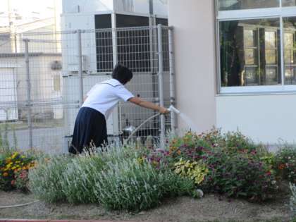花壇の水やり、ありがとうございます。 今日は、暑くなりそうです。