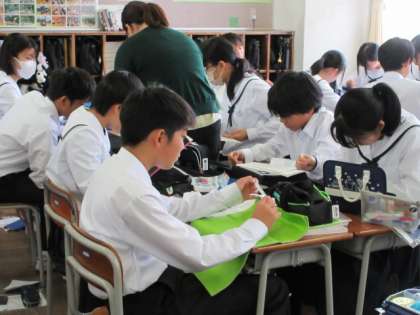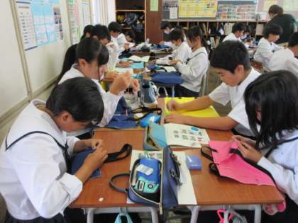10月16日(水) 授業の様子(1学年) 公開日 2024/10/16 更新日 2024/10/16 第1学年 技術・家庭科の家庭分野の授業です。針に糸を通したり、玉留めをしたり貴重な経験です。いつごろ完成できそうかな。