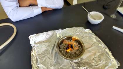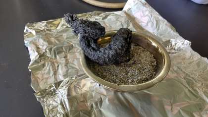 10月18日(金) 授業の様子(あおば級) 公開日 2024/10/18 更新日 2024/10/18 北中NEWS 理科の授業で、砂糖と重曹、エタノールでへび花火の実験をしました。 砂糖3g、重曹0.8gから4.3gのへびがニョキニョキと生まれてきました。楽しかったです。