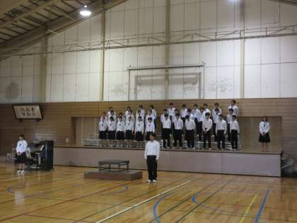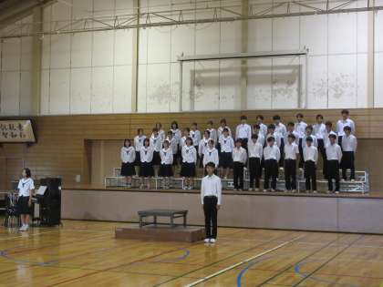 10月18日(金)3学年合唱リハーサル 公開日 2024/10/18 更新日 2024/10/18 第3学年 5、6限に合唱コンクール実行委員が司会進行を進め、学年リハーサルを行いました。各クラス今までの練習の成果をみんなの前で発表しました。少し緊張した様子もうかがえましたが、堂々と歌っていました。音楽科の中島先生からの講評に真剣に耳を傾け、残り少ない練習に生かそうとしている姿勢に、本気度が伝わってきます。 (上から 3−1 3−2 3−3)