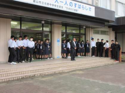 今日もたくさんの生徒が、あいさつ運動に参加しています。