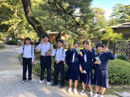 兼六園の時雨亭前で、はいポーズ!