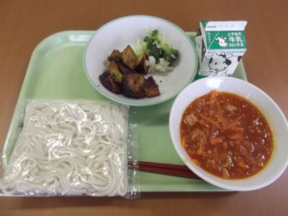 11/19(火)今日の給食 公開日 2024/11/19 更新日 2024/11/19 給食 ソフト麺は、給食の人気メニューで、その中でもミートソースは大定番で安定の美味しさです。だから、その美味しさを家族で味わいたいです。特におじいちゃんと食べたいです・・・祖父と麺・・・ごちそうさまでした。 <今日の献立> ソフト麺 牛乳 ソフト麺のミートソースかけ 大学いも 花野菜サラダ