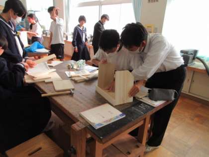 11月21日(木) 授業の様子(2学年) 公開日 2024/11/21 更新日 2024/11/21 第2学年 技術・家庭科の技術分野の木材加工の様子です。慣れない作業だと思いますが、意欲的に取り組んでいます。