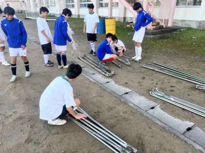12/2(月)サッカー部の活動 公開日 2024/12/02 更新日 2024/12/02 北中NEWS 今日の放課後、今年度長期間にわたりサッカー部が使用していたテントを、部員みんなで丁寧に片付けました。冬支度です。