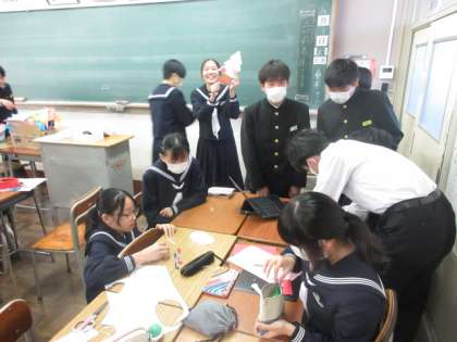 3組は、季節の掲示物をつくりました。班のみんなで協力しながら、楽しく制作していました。