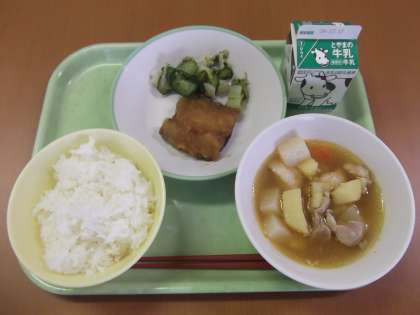 今日のごはんは、大沢野の土(ど)地区(小羽地区の山奥)で栽培されている有機栽培のコシヒカリになります。肥料管理や病害虫の予防等、生育管理が難しく、非常に手間がかかる栽培方法です。いつも以上にしっかり味わって、残さず食べてほしいと思います。