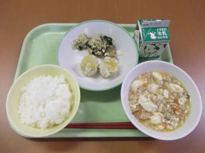 12/6(金)今日の給食 公開日 2024/12/06 更新日 2024/12/06 給食 給食をいただきながら、頭の中は2人の少年が虫取りをする姿、そして天気予報が、BGMは「ぼくのなまえは・・・♪、ぼくのなまえはマーボー♪」が流れていました。あの天気予報は10年前に終了しましたが、今でも覚えています。懐かしい思い出でした。 <今日の献立> ごはん 牛乳 にんじんシューマイ 小松菜の大豆そぼろ和え マーボー豆腐
