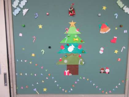 12月といえば、クリスマス。掲示物も12月を表現したものになってきました。折り紙でつくってあるのですが、細かい作業が施されています。なんか、ワクワクしますね。