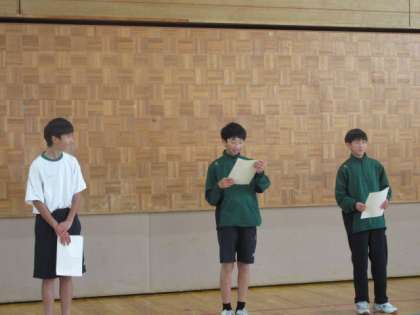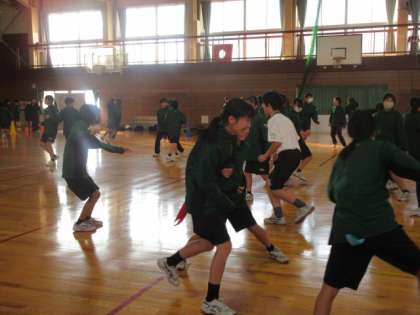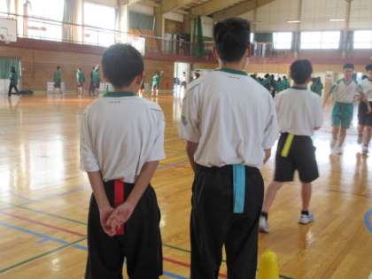 12月12日(木)1学年レクリエーション(その2) 公開日 2024/12/12 更新日 2024/12/12 第1学年 最初の競技は、クラス対抗「しっぽとり」です。しっぽを取られないように、全力で走り回っています!