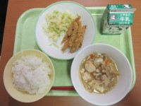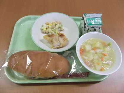 12/16(月)今日の給食 公開日 2024/12/16 更新日 2024/12/16 給食 今日は、今年最後の「パン給食」の日です。 さて、今日の食材の「ひよこ豆」ですが、豆知識を披露すると・・・スペインでは「ガルバンソ(garbanzo)」と呼ばれ、これを英語読みすると「ガルバンゾー」になるそうです。3年生、ひよこ豆を食べてこれからを「頑張るぞ!」 <今日の献立> コッペパン 牛乳 ポークフリッター ひよこ豆のサラダ 野菜のスープ煮
