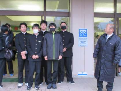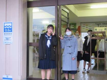 天気が悪いですが、たくさんの生徒があいさつ運動に参加していました。