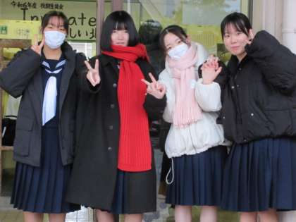 天気が悪いですが、たくさんの生徒があいさつ運動に参加していました。