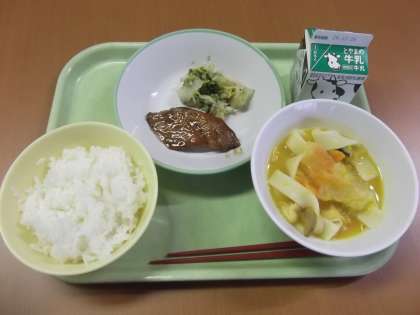 12/19(木)今日の給食 公開日 2024/12/19 更新日 2024/12/19 給食 今日は、3年生にとってなかなか意味深なおかずがありますね。「ほうとう」鍋です。自分の伝家の「宝刀」を簡単に使って、「放蕩」三昧の生活にならないよう気を引き締めましょう。がんばりましょう! 「宝刀」・・・切り札 「放蕩」・・・品行が悪い 勝手気まま <今日の献立> ごはん 牛乳 鰺のみりん焼き 柚子あえ ほうとう鍋