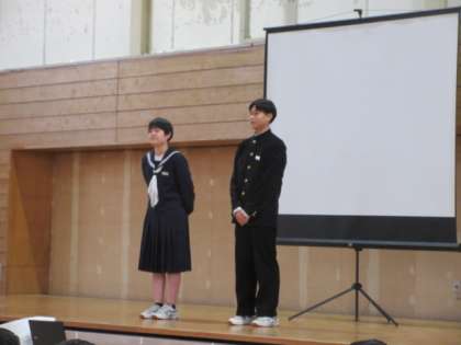富山県代表として、バレーボールの全国大会に出場する生徒の壮行会を行いました。水球競技の選手は、岡山で大会に参加しています。