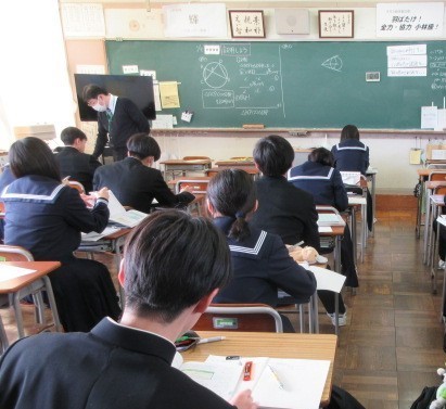 数学と社会の授業の様子です。問題演習に真剣に取り組んでいます。