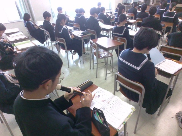 1月28日(火)授業の様子(1学年) 公開日 2025/01/28 更新日 2025/01/28 第1学年 音楽では、アルトリコーダーを演奏しています。今日は、低い音の練習していました。きれいな音色で演奏できるとよいですね。