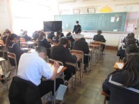 技術・家庭科(技術分野)では、プレゼンテーションソフトウェアを活用して、富山県の紹介を制作しています。1年1組は、今日で制作の時間は終わりです。素敵なスライドが完成しました。