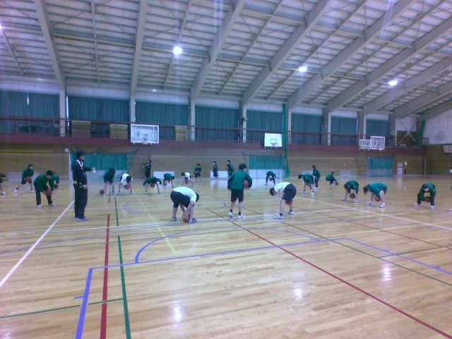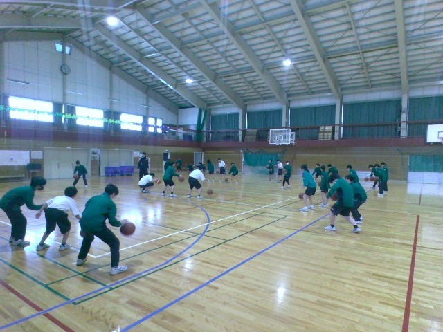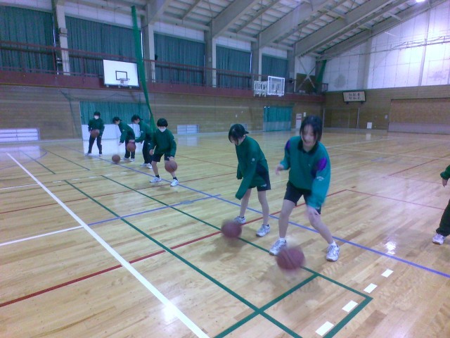 現在、保健体育の授業では、バスケットボールを学習しています。寒さに負けずがんばっています。画像は、ドリブルの練習の様子です。