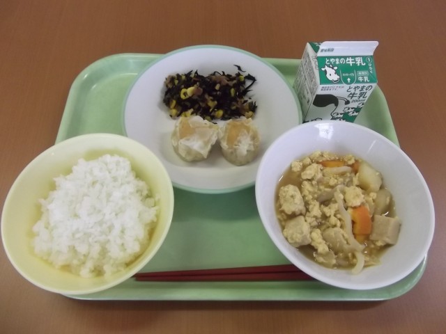 2/7(金)今日の給食 公開日 2025/02/07 更新日 2025/02/07 給食 今日は、ひじきとコーンのソテーが提供されています。ヒジキ、コーン単品より、合わせて炒めるとコーンなに(こんなに)美味しい料理になるんですね。私にとってソテー外(想定外)でした。<今日の献立> ごはん 牛乳 にんじんシューマイ ひじきとコーンのソテー 卵とじ