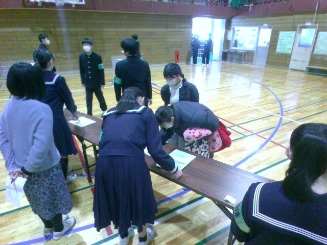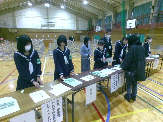新入生説明会の受付の様子です。係の生徒ががんばっていました。