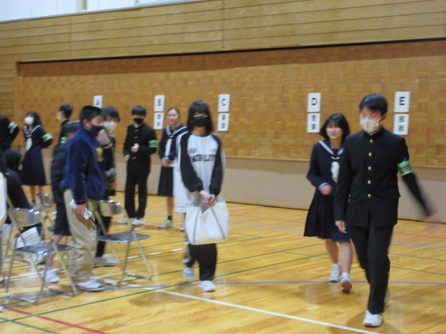 6年生のみなさんを、中学生が体験授業会場に連れて行きました。