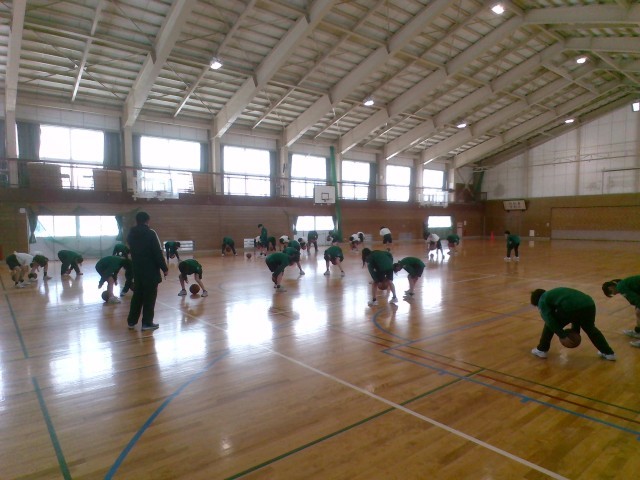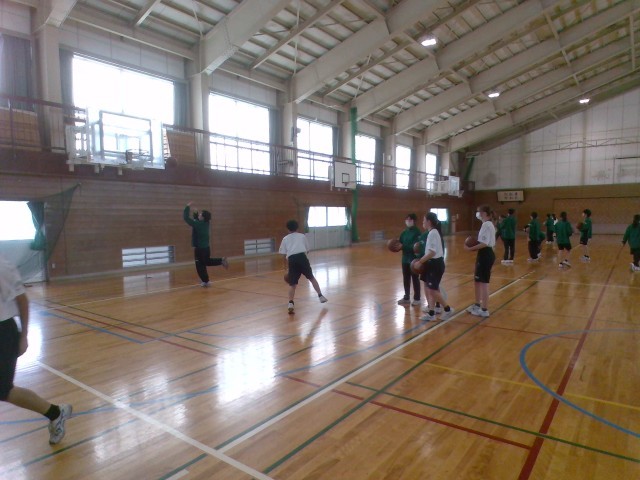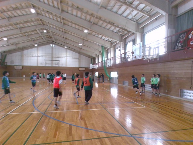 保健体育科では、バスケットボールを学習しています。怪我をしないようにしっかりと準備運動して、シュート練習から始めます。後半は、ミニゲームをしました。これまでの練習の成果が発揮できるとよいですね。