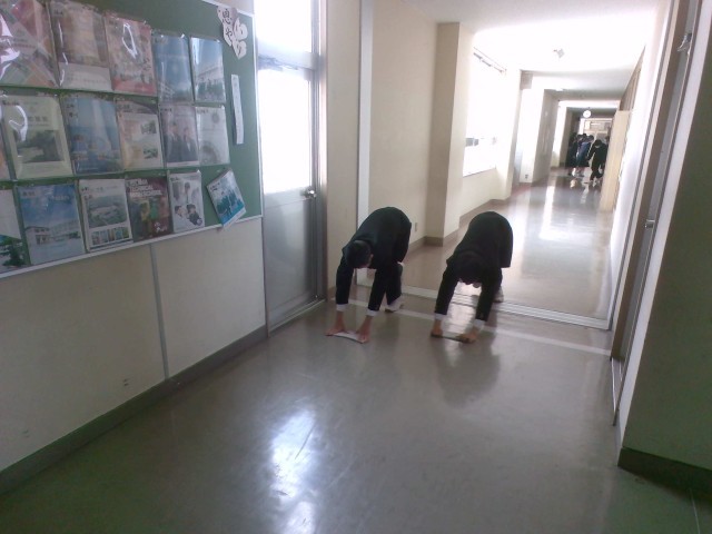 清掃の様子です。今日は、給食後に清掃しました。みんな一生懸命に清掃をしています。