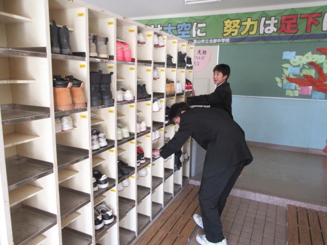 美化福祉委員会のサクラサクプロジェクト、下足ロッカー掃除を行いました。